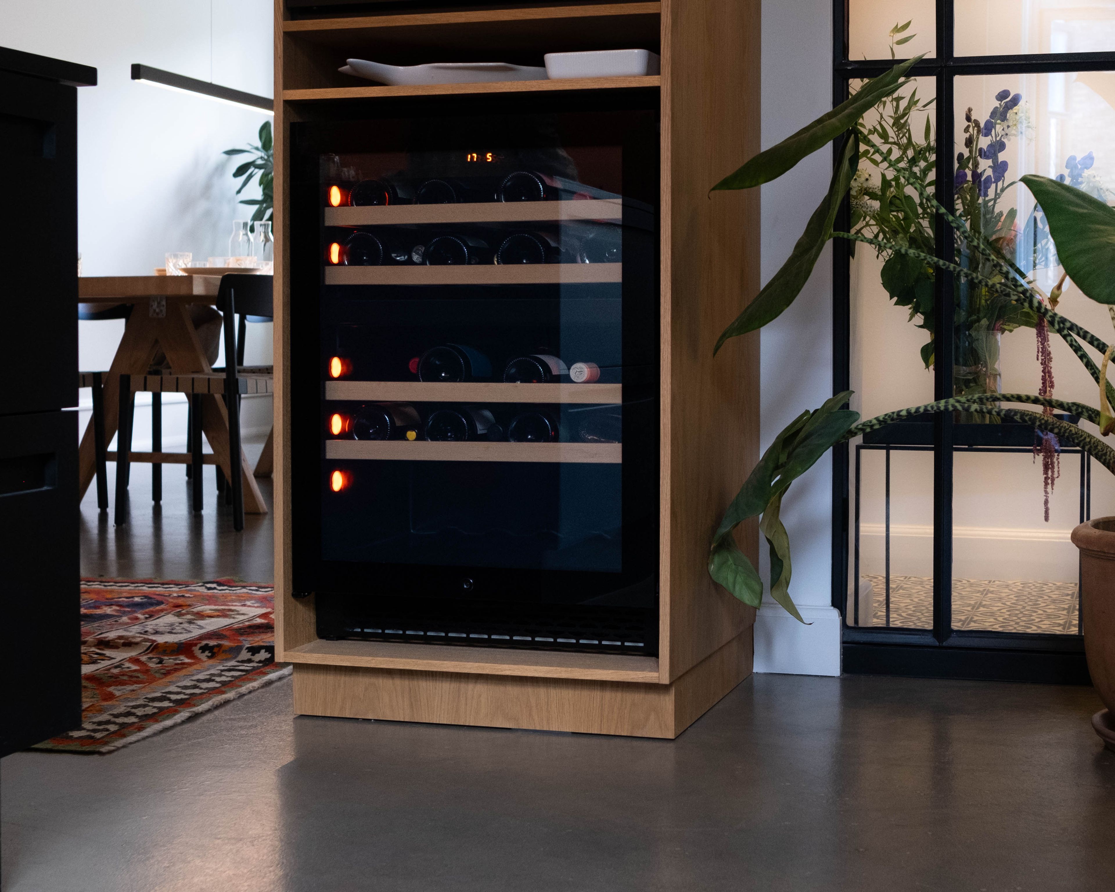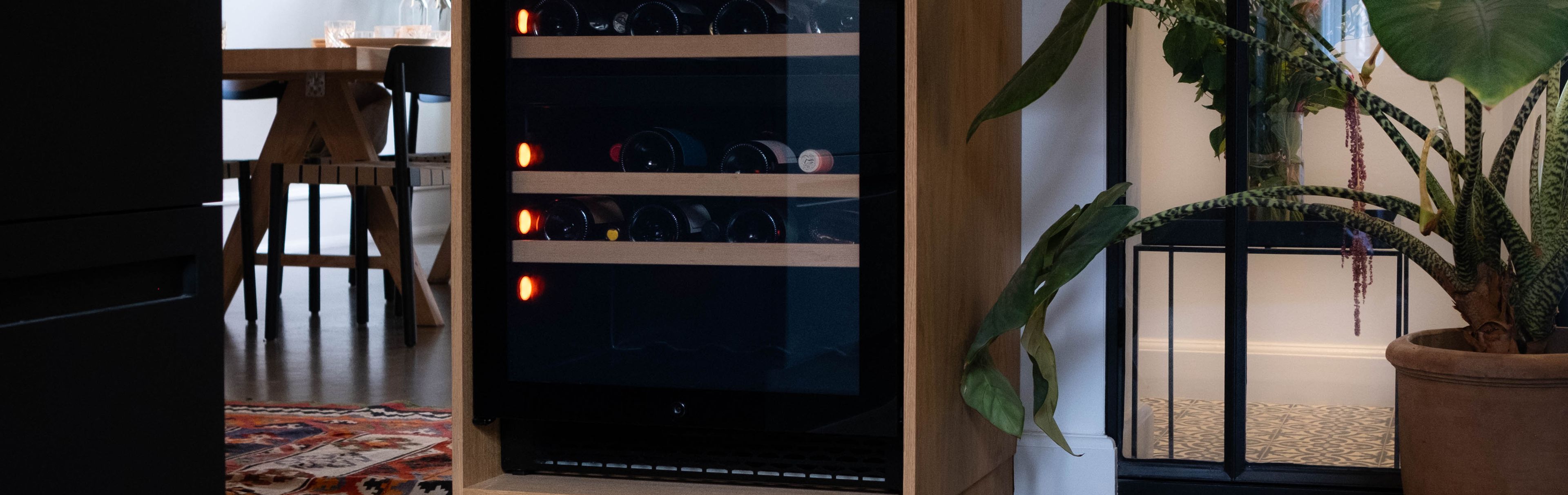 Pevino manufactures wine coolers for built-in, freestanding, and integrated use, even within kitchen settings. An integrated wine cooler means that the wine cooler itself is placed inside an existing kitchen module. This means that the wine cooler's door will always be slightly larger than the wine cooler itself, enclosing it and giving the final solution a more discreet and complete look. When a wine cooler is integrated, there are several things you need to be aware of, including ventilation, which you can read more about here.